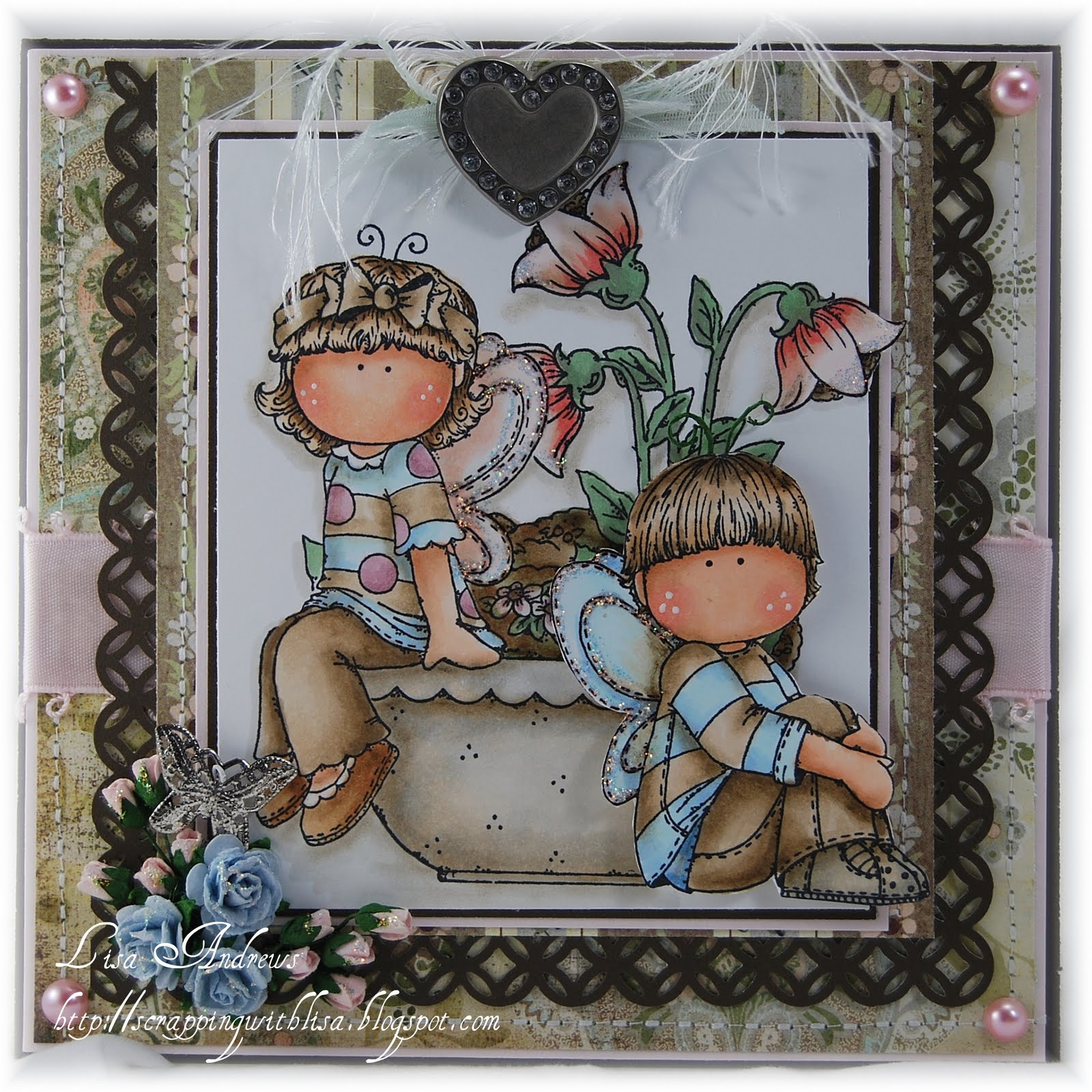 And here is my card! If you haven't guessed by now, I just LOVE the hÄnglar & stÄnglar images. These two remind me of my own Josh and Katie, brother and sister. I just love watching them interact together, they really love each other and big brother always stands up for his little sister. The bond between them is really growing, it's such a wonderful thing to experience!